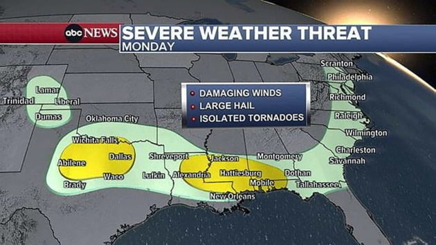 (NEW YORK) -- More than 40 million Americans are on alert for possible severe storms that may bring isolated tornadoes.Americans from Denver and Dallas... Read More.