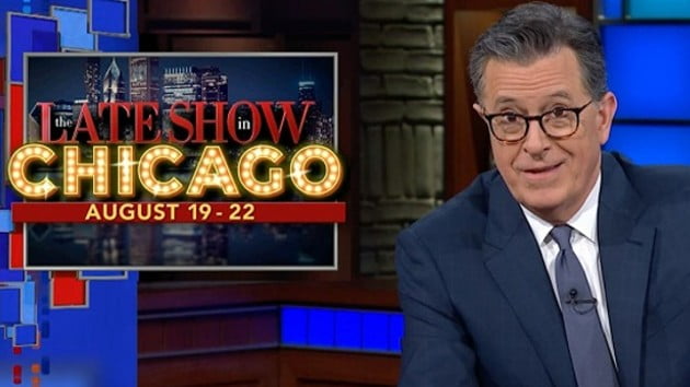 Colbert noted The Late Show will broadcast from Chicago’s “so creatively named” Auditorium Theatre during the week of this year’s Democratic National Convention in the Windy City.