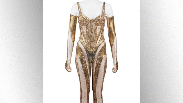 A custom-made gold catsuit and gloves that Dua wore during the South American leg of her Future Nostalgia Tour in 2022 sold for $50,800 — nearly 13 times its estimate. The bodysuit is embroidered with 120,000 crystals and took more than 1,100 hours to make.