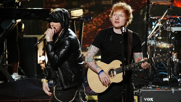 Ed, who’s credited rapping along to Eminem songs as a kid with helping cure his stutter, first teamed up with the rapper in 2017, when they recorded the song “River” on Eminem’s album Revival. He also joined Eminem and 50 Cent on a track on Eminem’s 2020 album Music to Be Murdered By.
