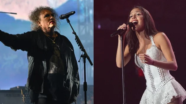 Calling him “a Glastonbury legend” and “a personal hero of mine,” Olivia introduced Smith, who came onstage wearing a sparkly black top and carrying a black-and-white acoustic guitar. The two played two of The Cure’s best-known tunes: “Friday I’m in Love” and “Just Like Heaven.”