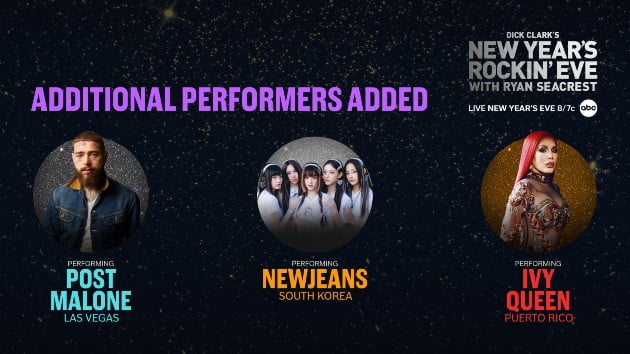 ABC and Dick Clark Productions just announced that Post Malone will be performing from the Fontainebleau Hotel in Las Vegas during the show, while K-pop group NewJeans will perform from South Korea. Plus, the countdown in Puerto Rico will now feature a performance by reggaeton star Ivy Queen.