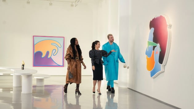 In the episode, Kristin Davis‘ Charlotte, who’s returned to work after years as a stay-at-home mom, is seen at work at the fictional Kasabian Gallery. In a clip of the scene posted on artist Alex Israel‘s Instagram, she shows a painting by Israel to Sam, who is playing themselves, dressed in light blue and wearing platform boots. With them is their real-life friend, designer Jeffrey C. Williams.
