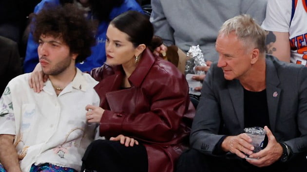 Selena and her boyfriend, Benny Blanco, were courtside at a New York Knicks game at Madison Square Garden, and Sting, 72, happened to be sitting next to them. One photo at People‘s website shows Sting and Selena, who already know each other, seemingly shaking hands.