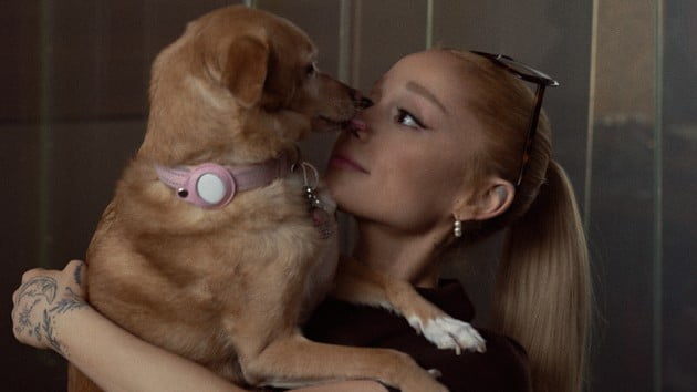 During her trip down memory late, Ariana places a memento for each song’s music video in the middle of the silver bowl-like decoration in each plaque. For “No Tears Left to Cry,” she puts some of her dog Toulouse‘s food in there, to commemorate the fact that he was in the video — and he happily jumps up and starts eating it.