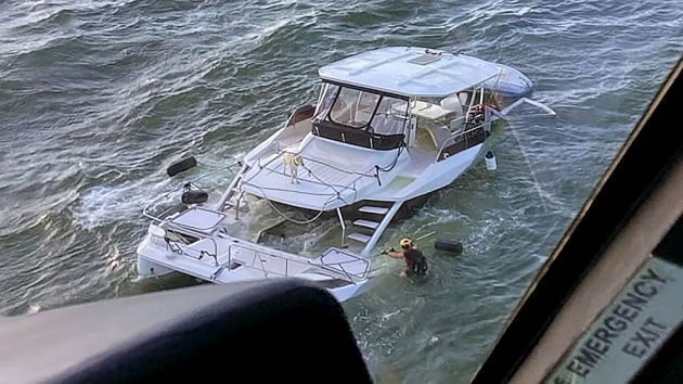 (BRUNSWICK, Ga.) — Two people and a dog were rescued Monday after their boat sank off the coast of Georgia, the U.S. Coast Guard said.