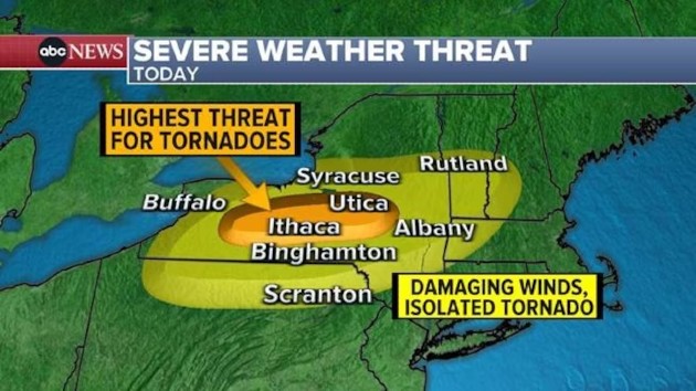 In addition to tornadoes, there is a significant threat for flash flooding from northern New York into Vermont and New Hampshire, with up to 5 inches of rain is possible in a short period of time.