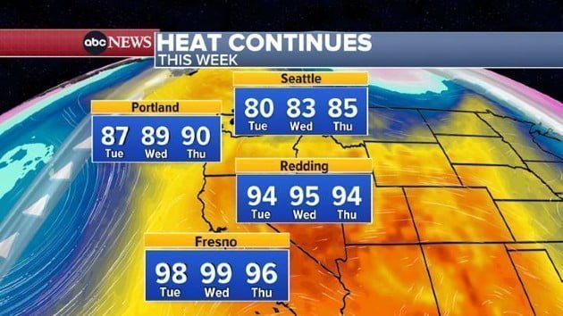 (NEW YORK) — A dangerous heat wave that began much earlier than usual is continuing on the West Coast.