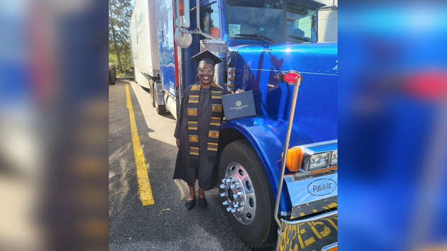 “I did 90% of my studies from inside my semi-truck,” said Roberts, who worked on assignments in rest areas while on the road.