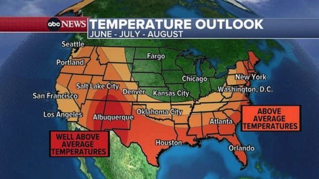 (NEW YORK) — Americans can likely expect summer temperatures to be even more sweltering than usual, according to the National Oceanic and Atmospheric Administration.
