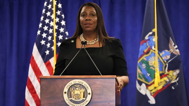 (NEW YORK) — New York Attorney General Letitia James questioned Thursday whether the California company that underwrote former President Donald Trump’s $175 million bond in his New York civil fraud case is financially qualified to handle a bond of that size.