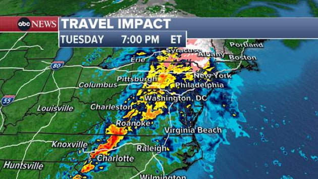 After dumping rain and snow on the West Coast over the weekend, a cross-country storm is headed for the East Coast where it’s expected to unleash heavy rain, wind and snow across major travel hubs this week, including Chicago, Atlanta, Charlotte, Washington, D.C. and New York City.