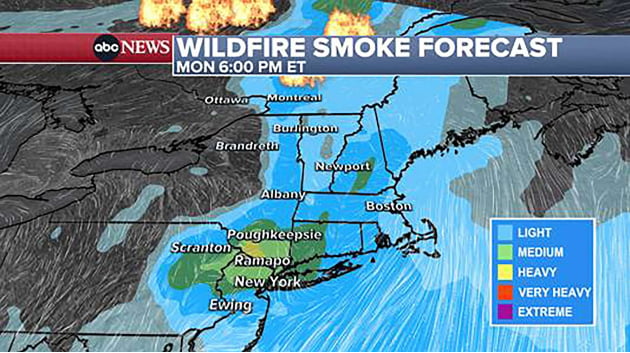 New York City will begin to see medium to heavy smoke by 6 p.m. on Monday.