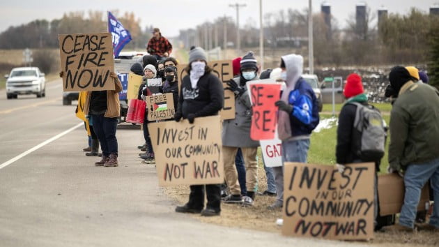 During Biden’s trip to Minnesota on Wednesday, protesters gathered at some events calling for a stop to the war.