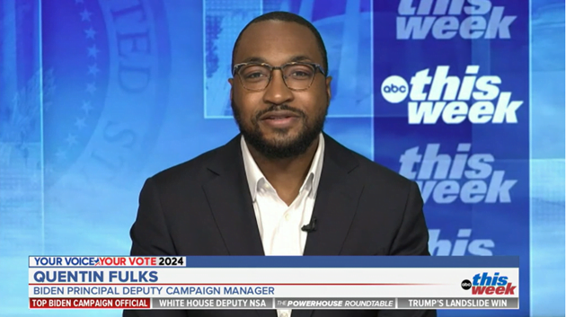 Fulks argued on “This Week” that Biden’s administration has done more for African Americans than any other, citing an increase in Black wealth and a shrinking of the racial wealth gap.
