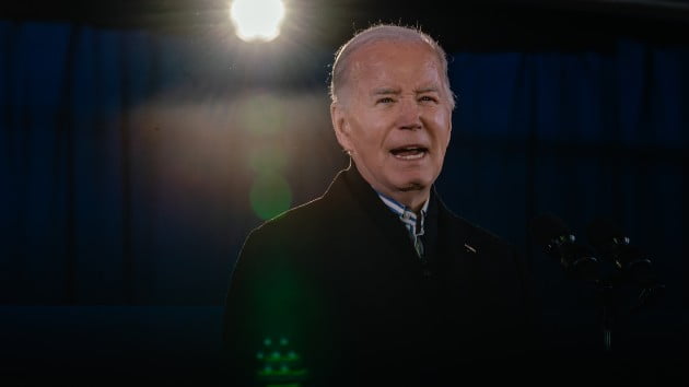 (WASHINGTON) — President Joe Biden on Tuesday night claimed former President Donald Trump “embraces political violence” and downplayed early polling showing him losing to Trump in a hypothetical rematch in 2024.