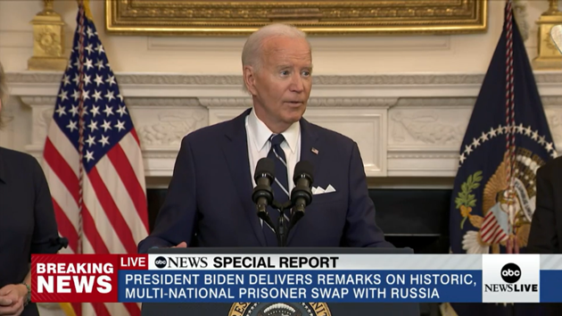 (WASHINGTON) — President Joe Biden on Thursday celebrated an extraordinary prisoner exchange that freed several Americans wrongfully detained in Russia, calling it a “feat of diplomacy and friendship” in remarks from the White House.