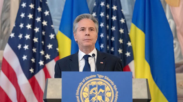 (KYIV, Ukraine) — Secretary of State Antony Blinken, during an unannounced visit to Ukraine on Tuesday, promised the U.S. will quickly deliver badly needed arms, touting Washington and the West’s alliances with Kyiv.