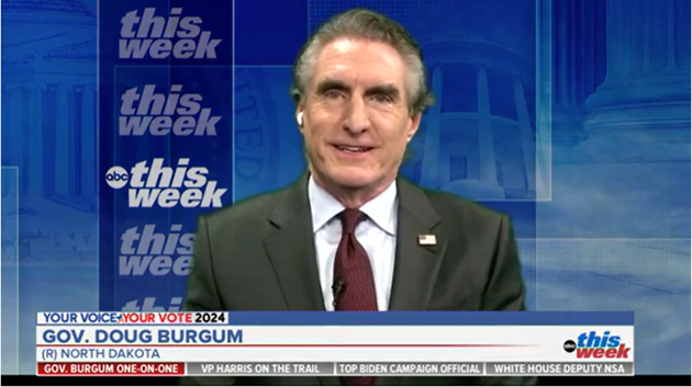 When Raddatz pressed Burgum over Trump’s repeated and unfounded claims that the 2020 election was “stolen,” a stance Burgum has opposed in the past, including an interview with ABC News anchor George Stephanopoulos, Burgum initially pivoted to past instances of other candidates raising questions about the election process.