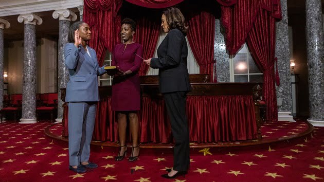 (WASHINGTON) — Vice President Kamala Harris swore in Sen. Laphonza Butler to serve as California’s senator on Tuesday, replacing the late Sen. Dianne Feinstein.