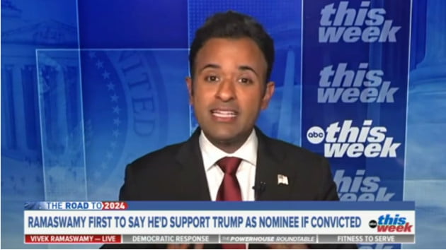Ramaswamy was repeatedly pressed by Stephanopoulos about disagreeing with some of Trump’s conduct — and which actions in particular he disagreed with — while still backing the former president.