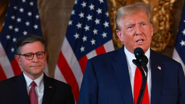 First, he huddled with House Republicans at the Capitol Hill Club. The meeting was behind closed doors, but multiple sources told ABC News the former president praised House Speaker Mike Johnson as doing a “good job.”