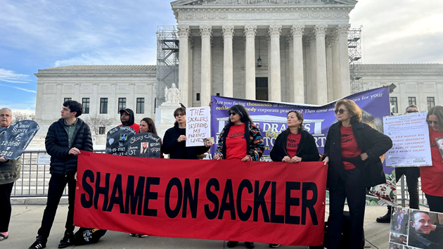 (WASHINGTON) — A historic multibillion-do7llar settlement with OxyContin-maker Purdue Pharma hung in the balance at the Supreme Court on Monday as victims of the nation’s opioid epidemic urged the justices to approve the deal over opposition from the Biden administration, which warned it would let the company’s owners — the Sackler family — evade greater financial responsibility.