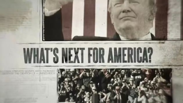 The phrase “Unified Reich” appears as a part of hypothetical news articles in the video that announce Trump’s hypothetical victory in the 2024 election, with the narrator asking, “What happens after Donald Trump wins?”