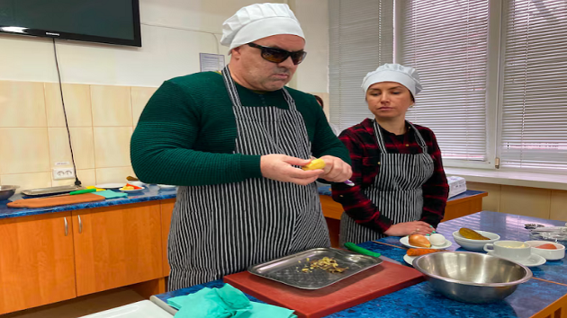 This March, on the premises of the local professional college of hotel, tourist and restaurant service in Lviv, the participants of the project learned not only how to use laptop, cellphone and other digital gadgets, but also how to cook and how to walk using the white cane.