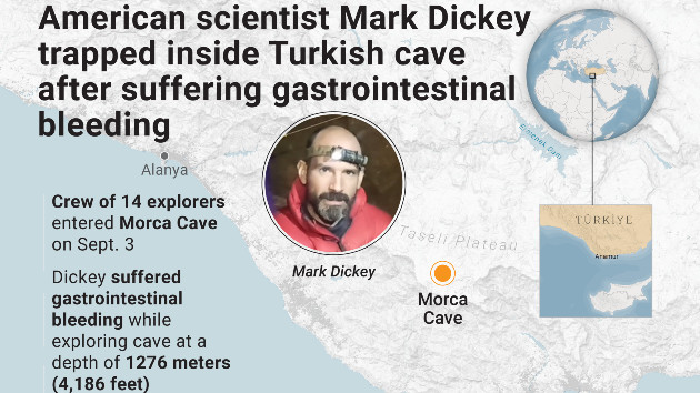 (NEW YORK) — Mark Dickey, a 40-year-old experienced American caver and researcher who fell ill almost 1,000 meters (more than 3,000 feet) below the entrance of a cave in Turkey, has recovered sufficiently enough to be extracted in an operation that could last three or four days, Turkish officials confirmed on Friday.