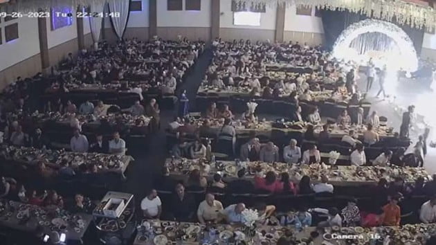 Gandhi Bashar Abdul Ahad, a musician at the wedding, told ABC News that women and children started screaming as they noticed the fire dropping from the ceiling.